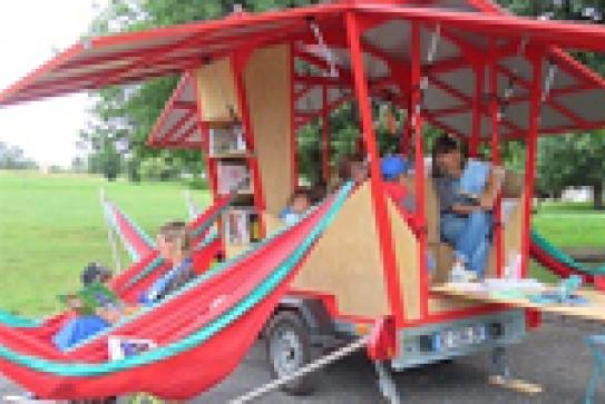 Venez découvrir la bibliothèque ambulante "La Petite Roberte", de l'association Passeurs de Mots, et rencontrer les bibliothécaires au Parc Paysager de Puy-Guillaume.